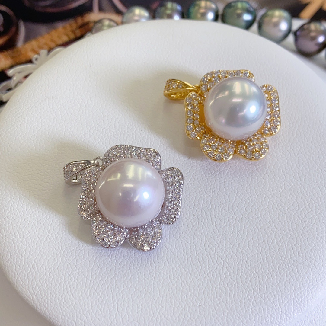 S925銀の付属品の花びらの真珠は黄白の2色のジルコンの嵌め込み図を支えて12-13mmを配合して玉を含みません。