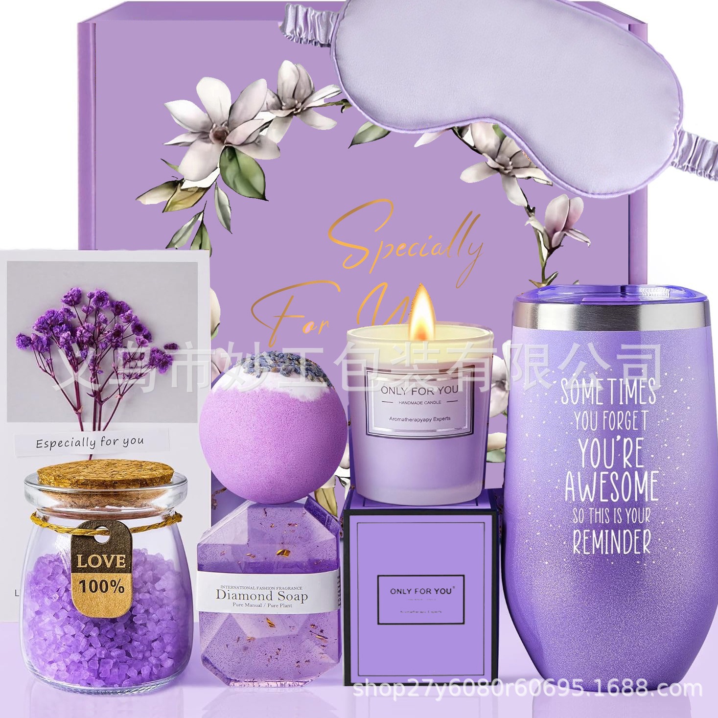 国境を越えた紫色のテーマバレンタインデーギフトセット母の日の親友誕生日ギフトカップ入浴ギフトボックス
