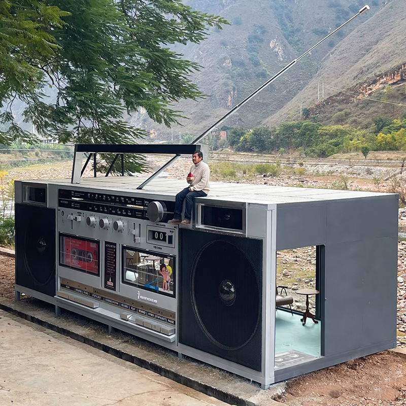 巨大テープレコーダーカフェ創意屋外カード装置観光地区排水装置ネット赤移動販売亭