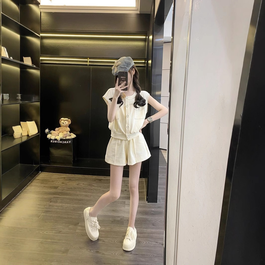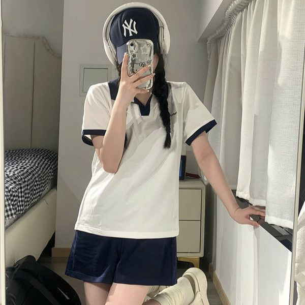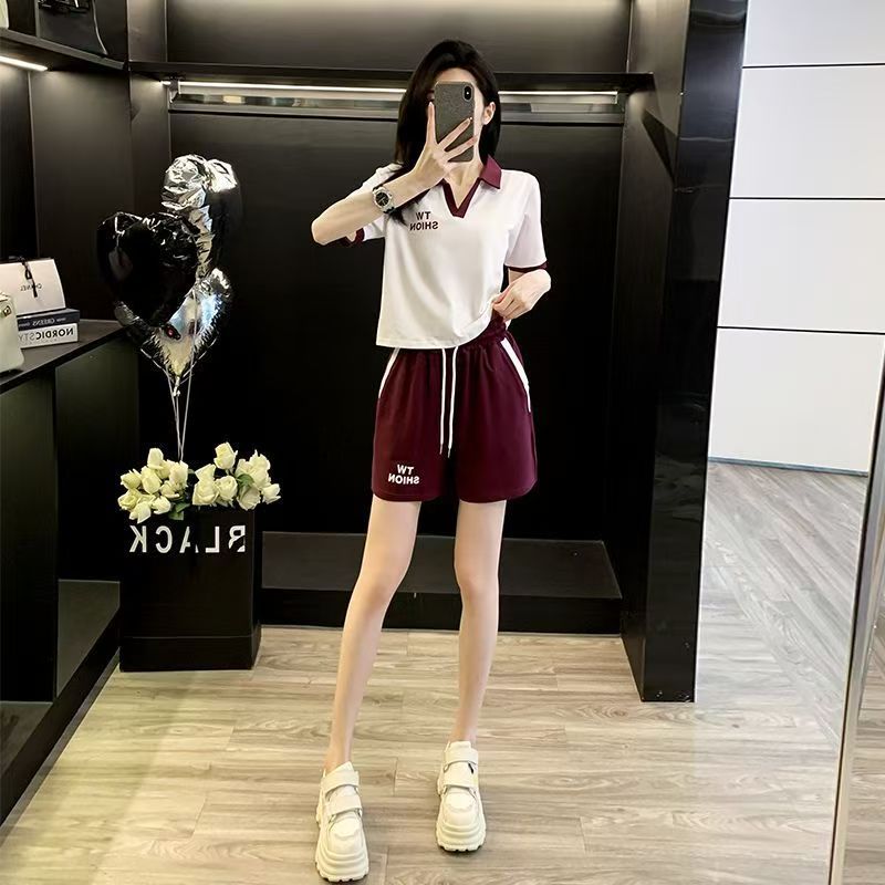 国境を越えた韓国版塩系レジャースポーツスーツ女性2025夏の新型デザイン感半袖パンツ2点セット潮