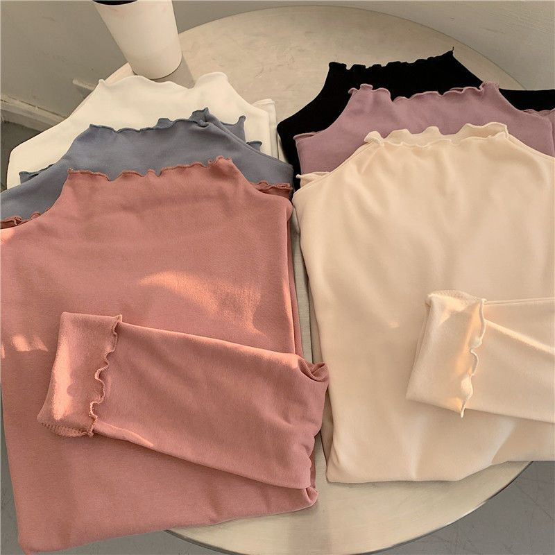 韓国版秋冬新作徳絨毛修身保温純色長袖tシャツ女性半高襟シャツ上着女性潮