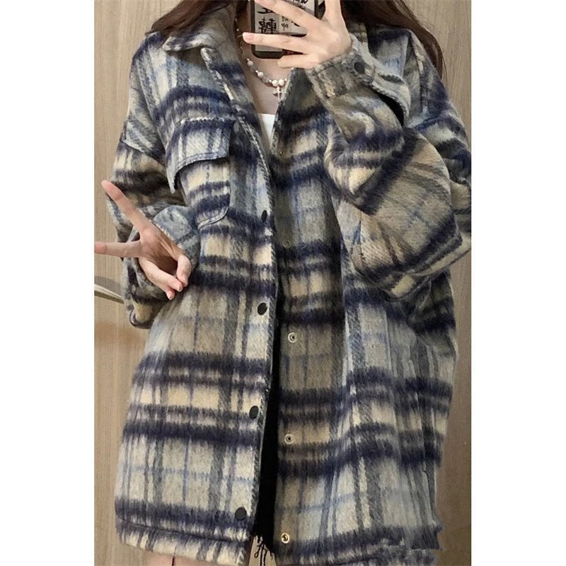 デザイン感のある新型の爆発的な野球服の格子の女性のコートの女性の韓系のカジュアルな怠惰な風の小さい香風の秋冬は厚くなります。