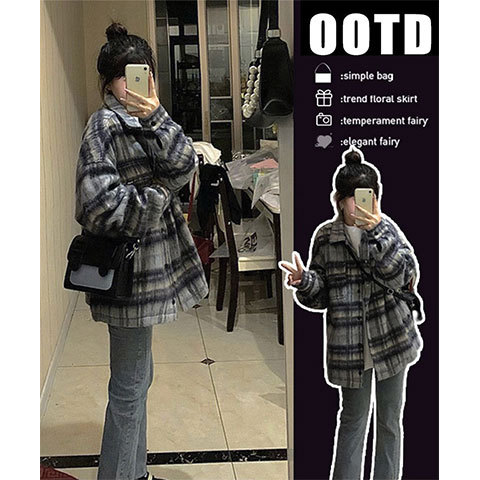 2023新型の爆金野球服の格子の女性の短いコートの女性の韓系のレジャーの怠惰な風の小さい香風の秋冬は厚くなります。