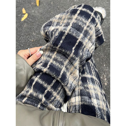 黒い格子縞のズボンの女性の秋冬2023の新型のハイウエストのレトロなカジュアルなストレートのズボンはやせている毛が現れます。