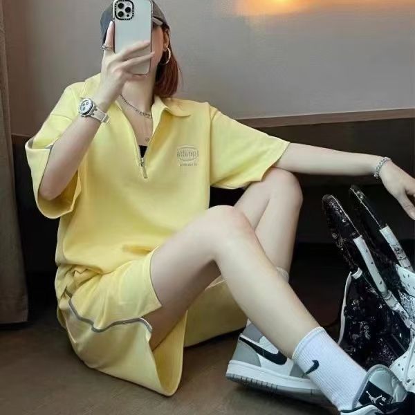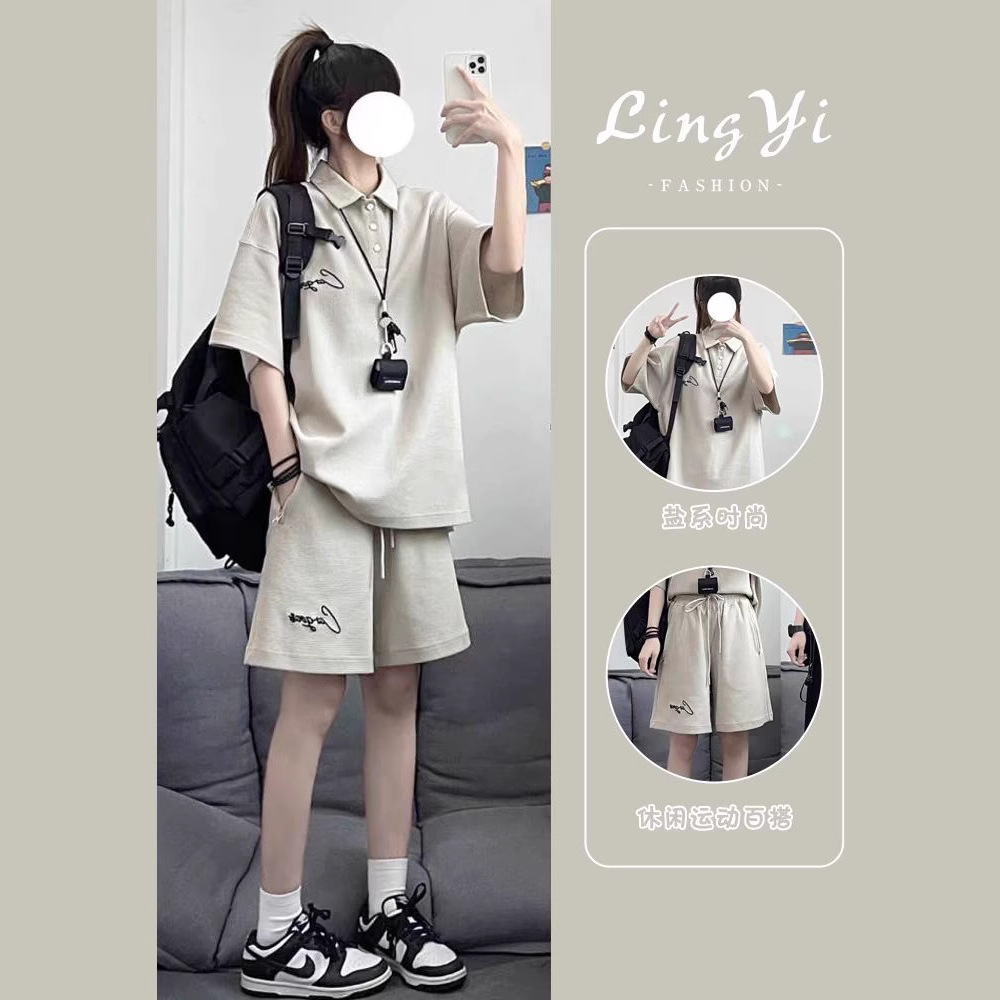 韓国東大門カジュアルスポーツ服レディーススーツ夏新入生韓国版ゆったり痩身ツーピーストレンドセット