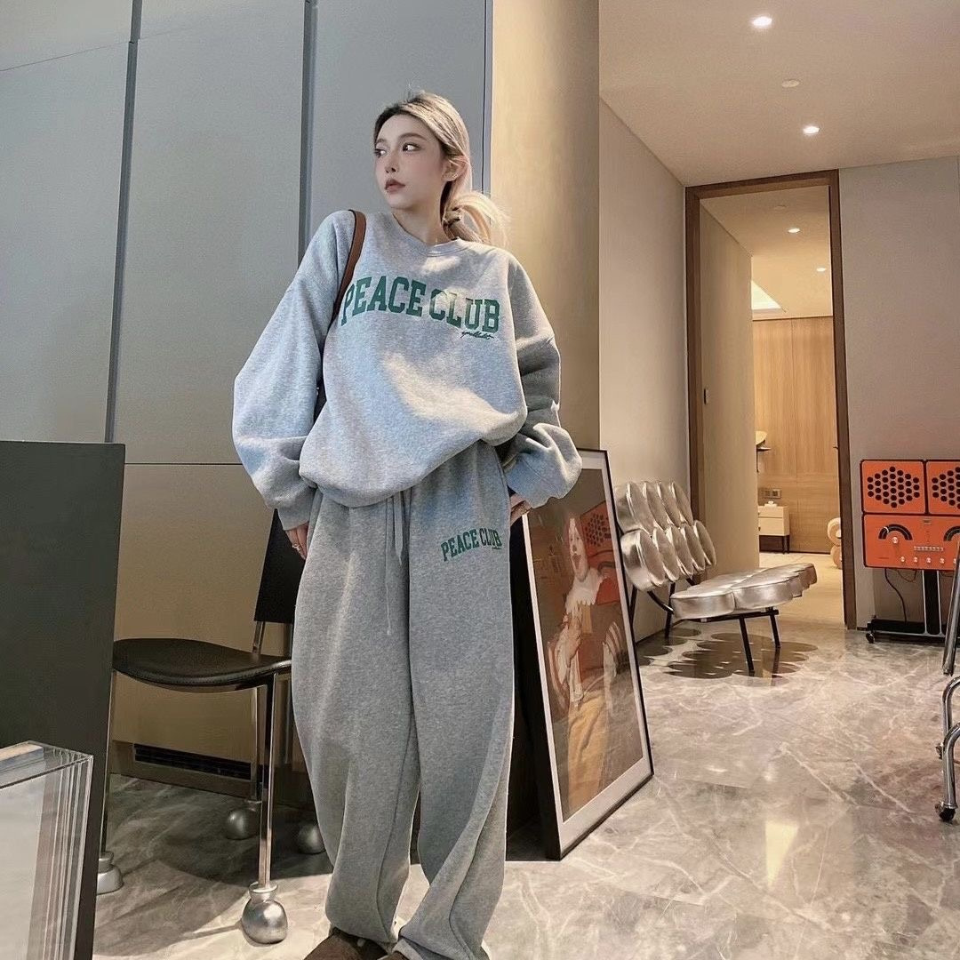 アメリカンスポーツ服セット女子学生春秋ゆるいファッション洋気衛衣ネット赤街頭レジャー2点セット潮