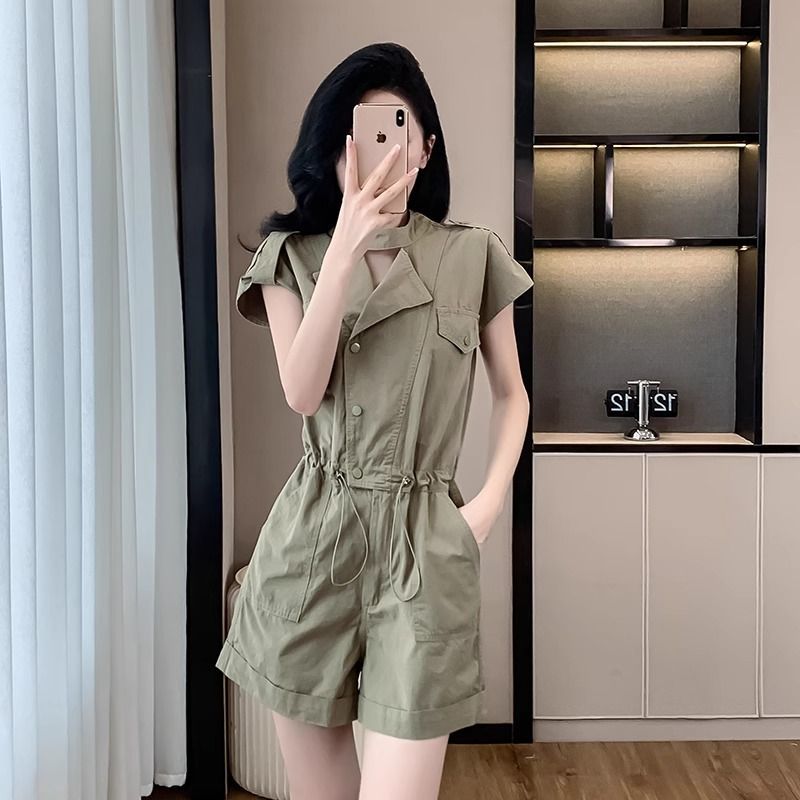 作業服ジャンプスーツショーツジャンプスーツ夏薄手パンツワイドレッグ小柄ジャンプスーツスーツおしゃれジャンプスーツ