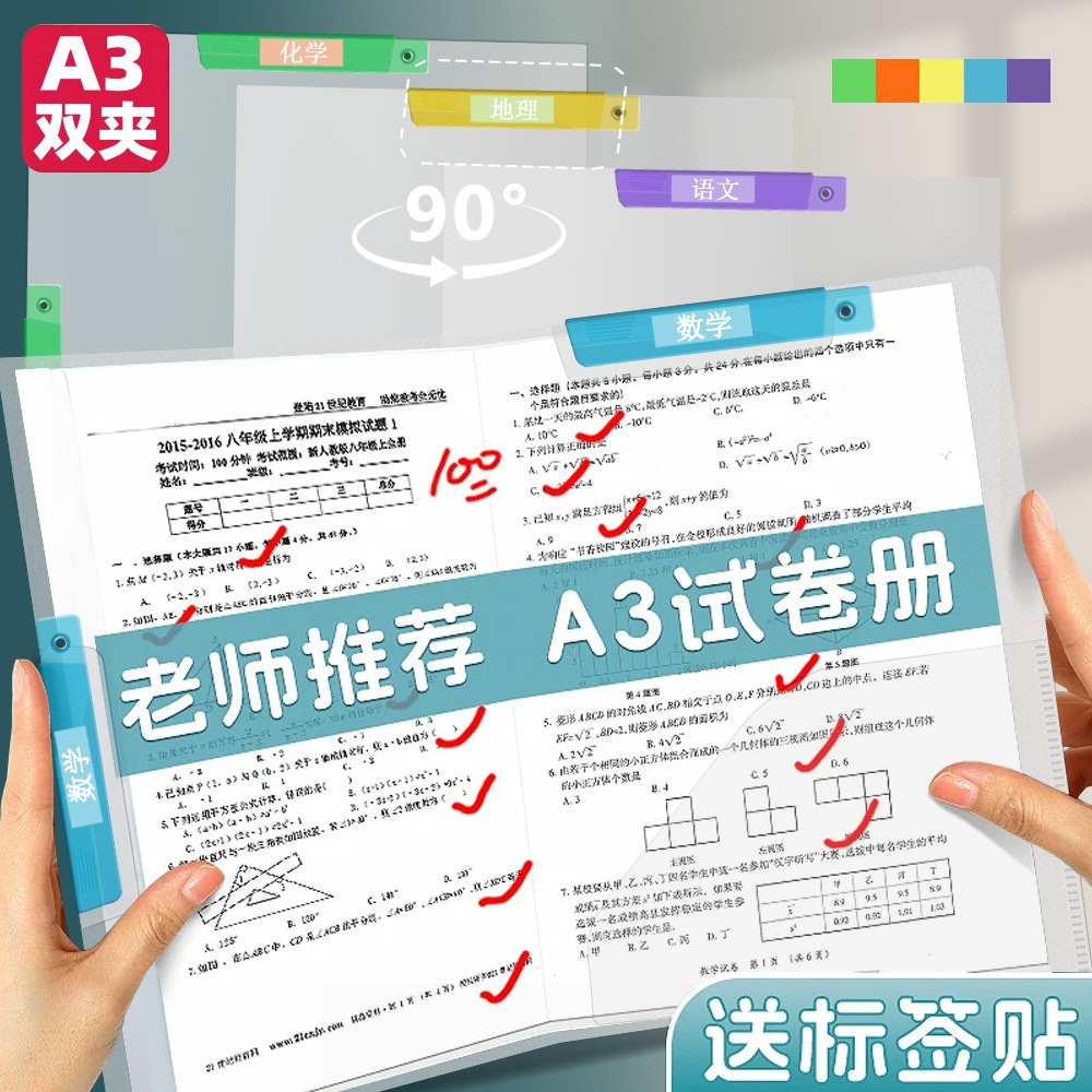 A4 回転ロッドクリップ フォルダー テスト用紙収納袋 インサート 中学生 小学生 ライブフォルダー 試験整理