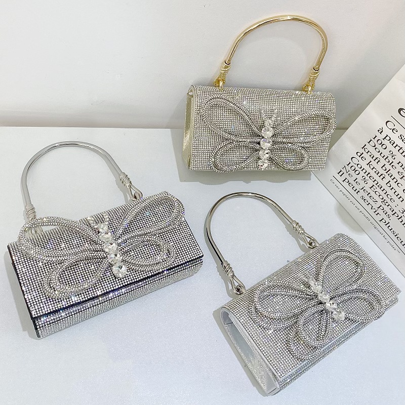 フランス式の小さな蝶のドリルバッグ2023の新しいblingキラキラのドリルには、パーティーバッグのハンドバッグのショルダーバッグが入っています