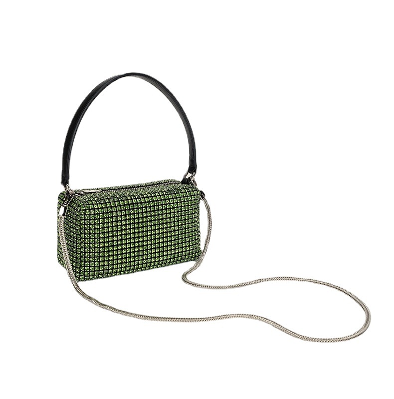 2023新型aw大王水ドリルバッグ女性グリーンチェーンはダイヤモンドバッグでいっぱいになっています。