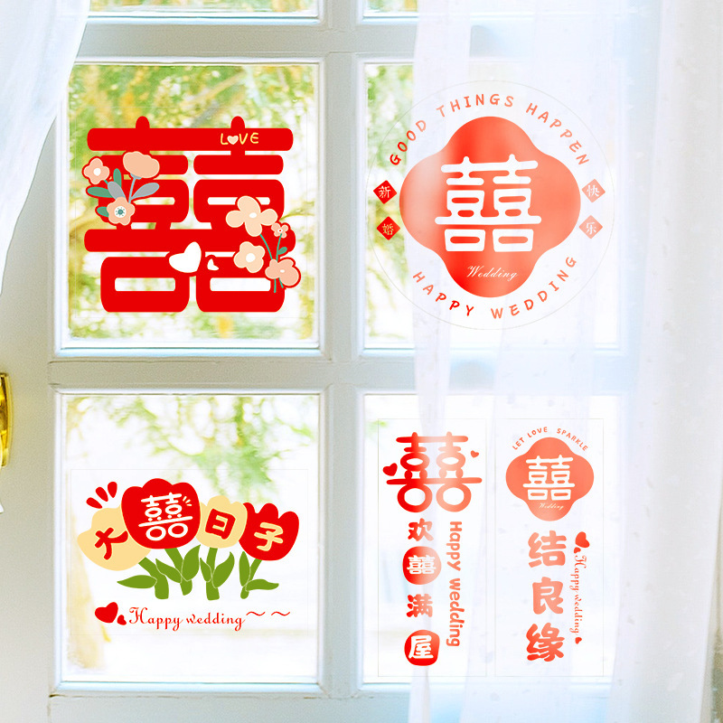 結婚式の喜字のステッカーの結婚用品のガラスの静電気は双喜窓の花の扉を貼って結婚の部屋を貼ってセットの装飾用品を配置します。