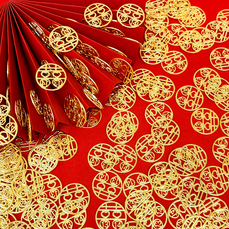 結婚した新しい部屋に喜字コインのアイデア金貨金色の五角銭の小さな金属がベッドの結婚部屋に卸売りを配置する
