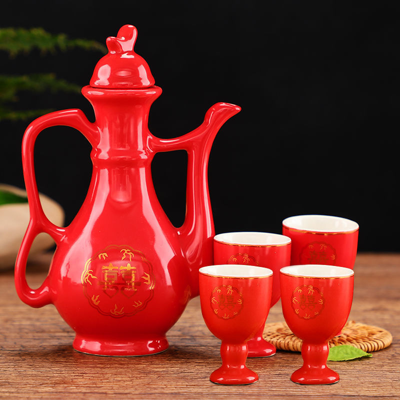 ウェディング用品陶磁器新人交杯酒敬酒杯結婚結婚式中国式龍鳳酒壺対杯セット