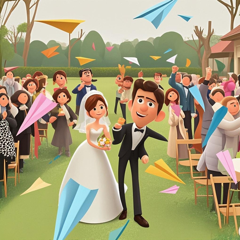 結婚式の紙飛行機の折り紙雰囲気の手投げ紙飛行機のカラー紙飛行機のカラフルな手投げ飛行機の折り紙バー