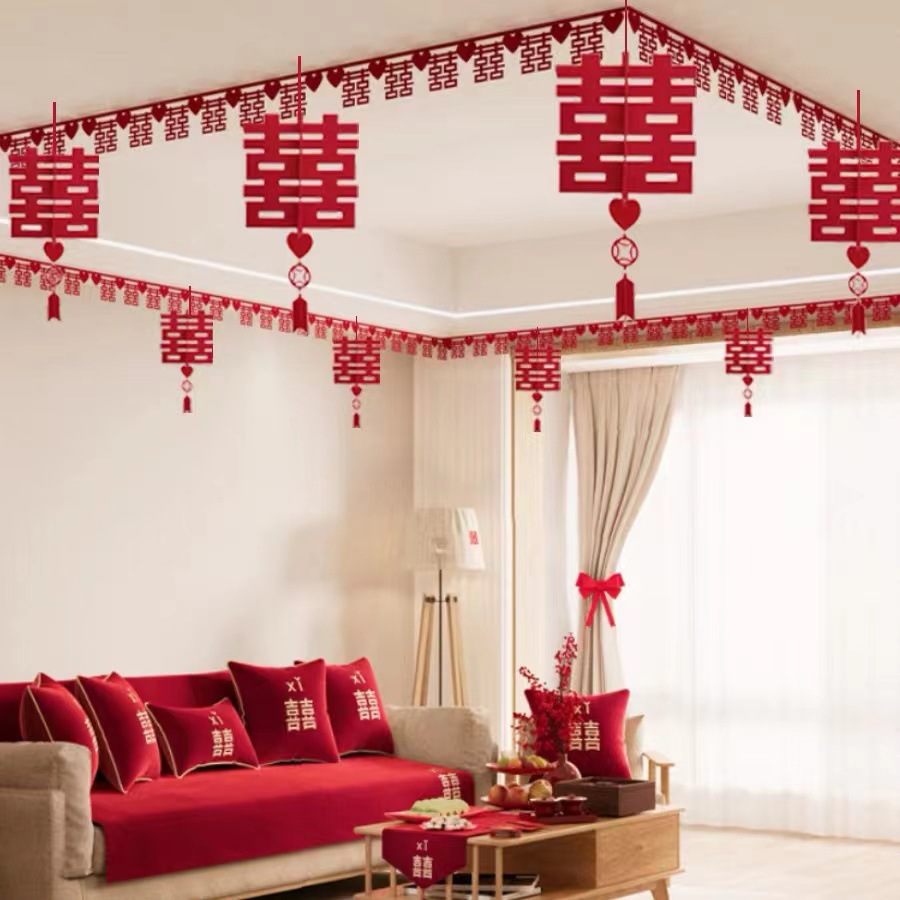 結婚式の天井、リビングルーム、寝室、廊下の装飾用のラテアート装飾セット、フラッグハンギングデコレーション、ウェディング用品、お祝い装飾