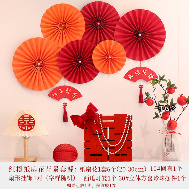 結婚式の部屋の装飾、喜字の紙扇子、中国風の装飾扇子、花飾り、結婚式用品