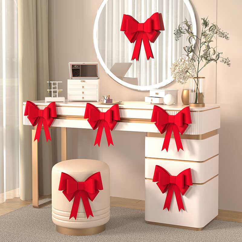 結婚祝いのウェディングルームにdiyワインレッドの蝶結び飾り不織布ネット赤背景壁のドアと窓の装飾用品を配置します。