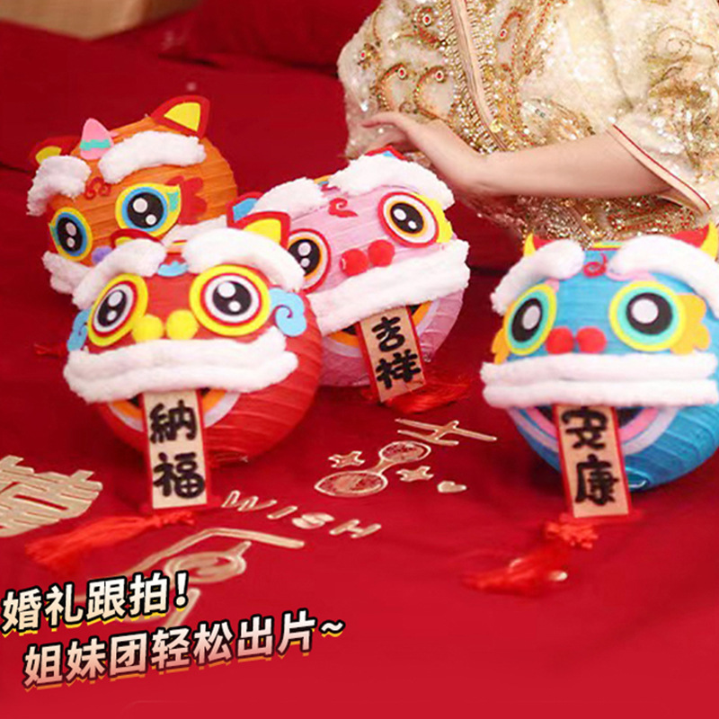赤い本のネットの赤いタイプの中国式の喜字の提灯の目を覚ましてライオンの写真を撮る道具の結婚のお祝いの紙の提灯の結婚する部屋の配置