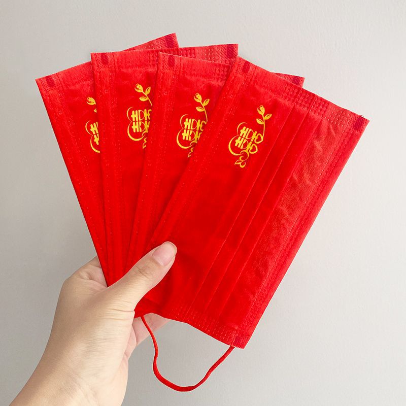 喜字赤色結婚祝い結婚式マスク男女使い捨て三層防護マスクプリント可