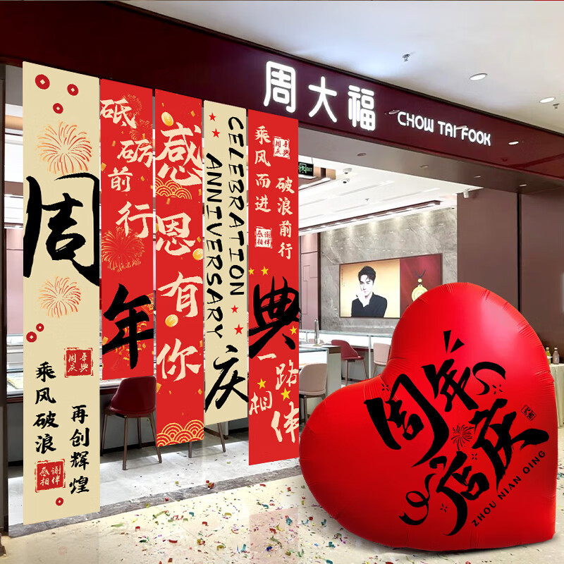 店舗周年慶条幅配置活動式装飾門店舗雰囲気雰囲気背景壁