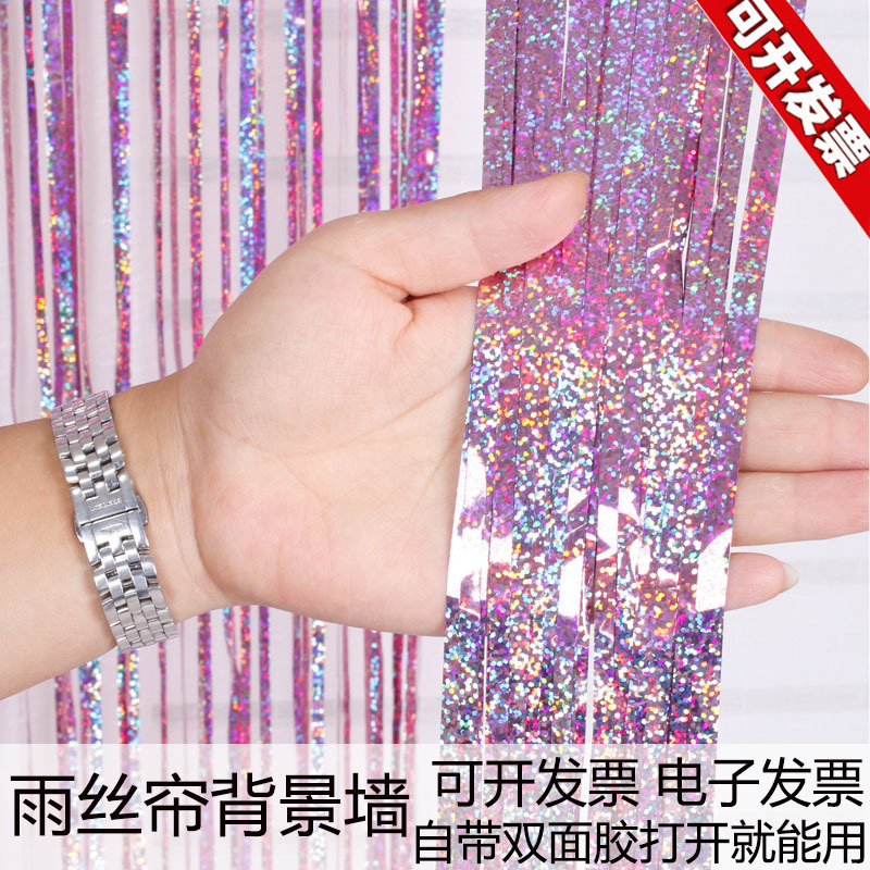 雨の糸のカーテンの背景の壁の舞台の誕生日の配置のシーンの幼稚園の元旦のクリスマスのリボンの装飾のレーザーの道具