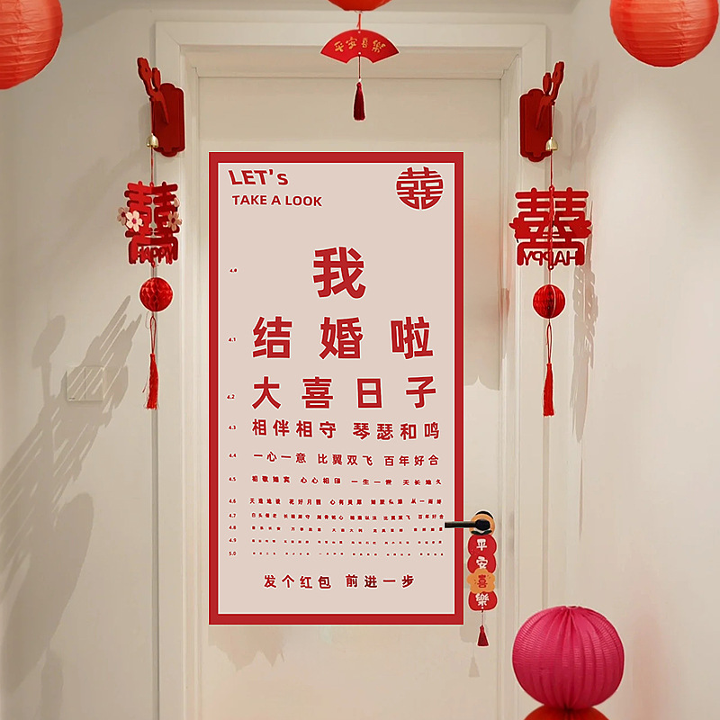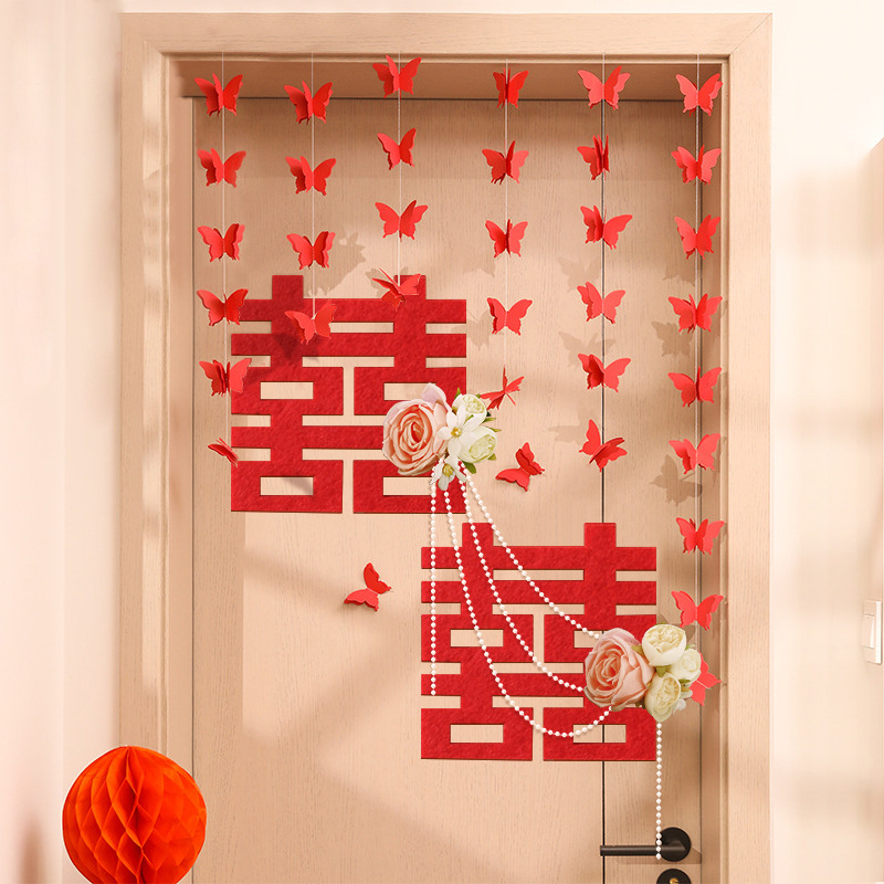 結婚部屋の配置の扉の喜のスーツの結婚用品の大全の客間の装飾の方の新しい部屋の寝室の喜字はウェディングドレスを貼ります。