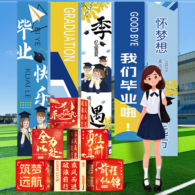 高校受験と大学受験の百日誓約大会のバナー、応援スプリント吊り布、教室クラスシーンレイアウト装飾バナー