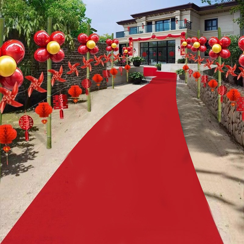 赤いじゅうたんの使い捨て結婚用品の結婚式の結婚祝いの配置の喜字の赤い厚い階段の客間の室外の室内
