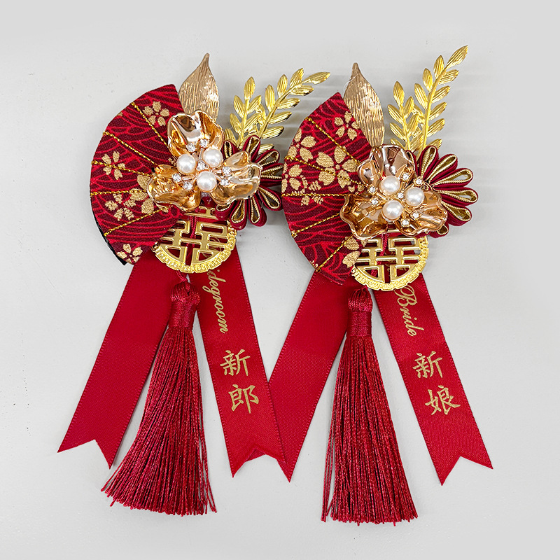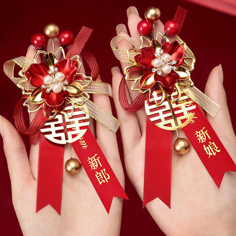新型高級中国式新郎新婦結婚式の胸花結婚セット