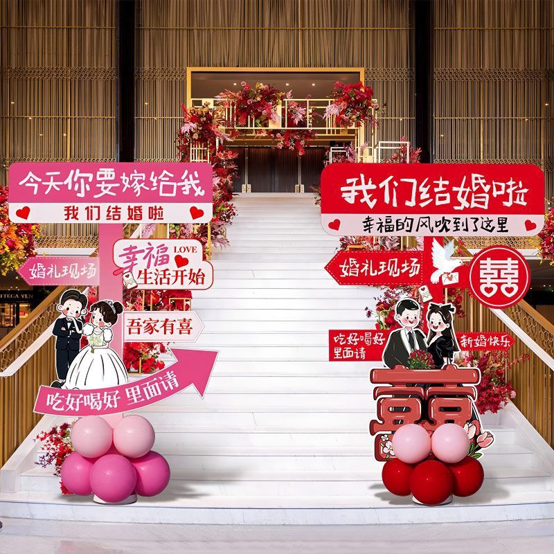 結婚路引結婚式標識kt板装飾農村庭子配置引道牌結婚祝い用品大全