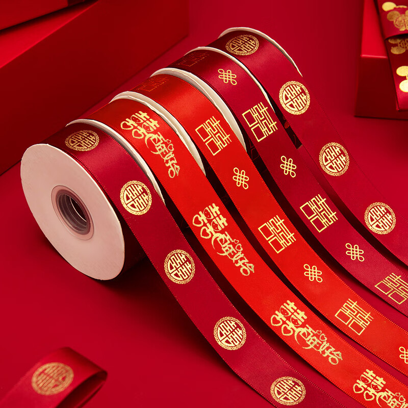 結婚喜字リボン字金拉花彩帯結婚車装飾結婚喜糖ギフトボックス装飾リボン