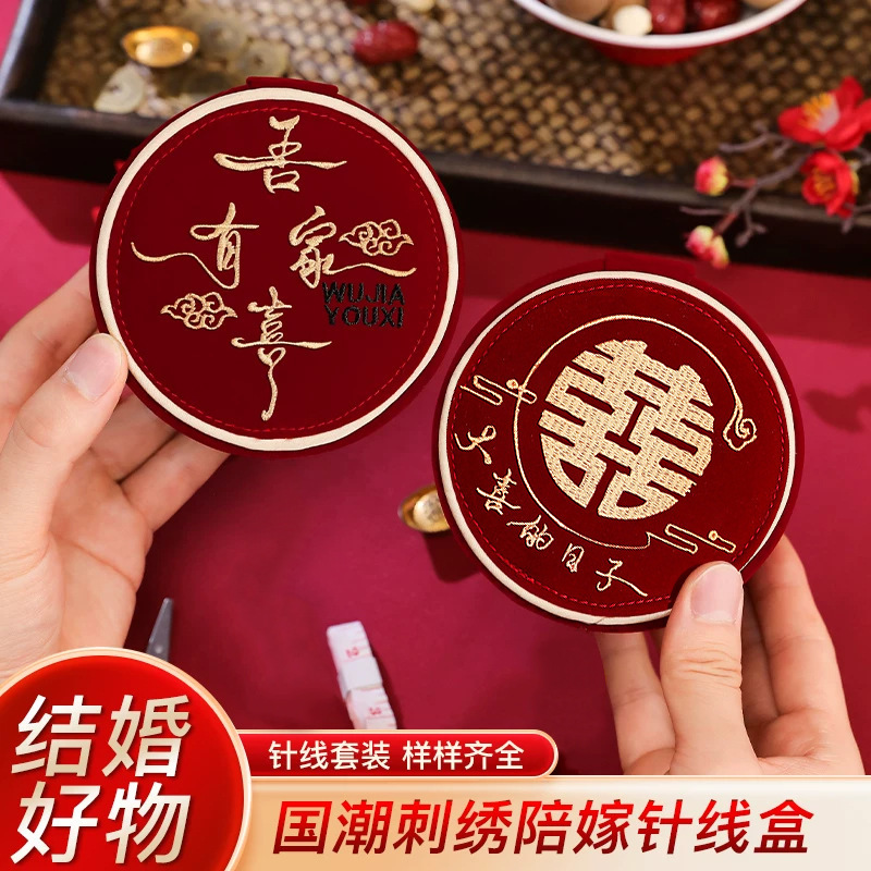 結婚の裁縫箱の女性の嫁入りセットの赤いお祝いの携帯用家庭用の針の収納の嫁入り用品の大全