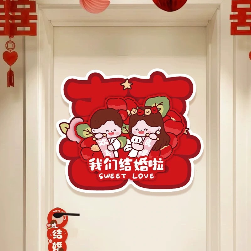 結婚部屋の配置結婚装飾立体喜字貼り新居客間寝室玄関結婚式専用喜字門貼り