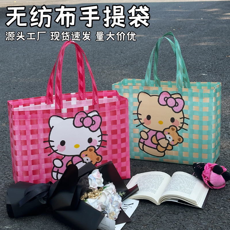 現物キティケイティ不織布手提げ袋高級感服レジ袋プレゼント袋厚手カバー