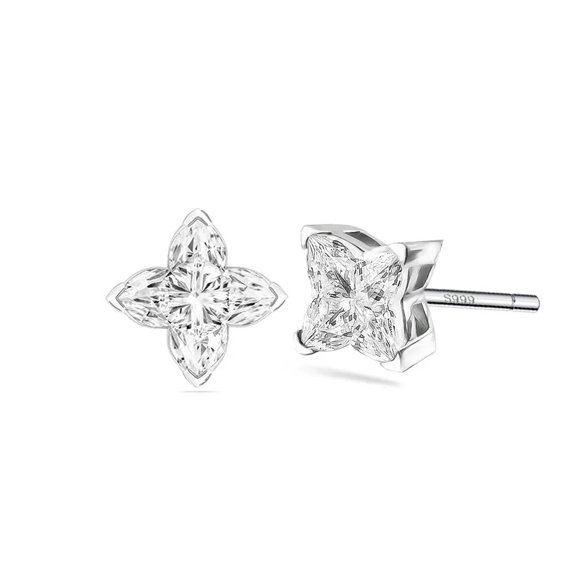 S999純銀ジルコンピアス幾何学クラシック四葉草イヤリング中性風高級感北極星イヤリング卸売り