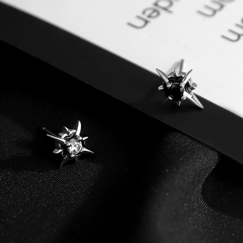S925純銀潮流個性北極星ピアス小衆潮カップル痞帅ファッションジルコン耳飾り工場卸売り