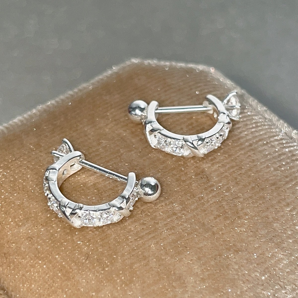 S999シルバーピアス女性大衆デザイン高級感ジルコン耳骨釘潮ねじねじ込み甘いクールな少女イヤリング