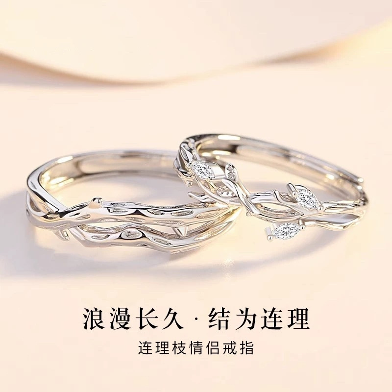 S999純銀指輪卸売り軽豪華高級感連理枝カップル口対戒小清新ins指輪女