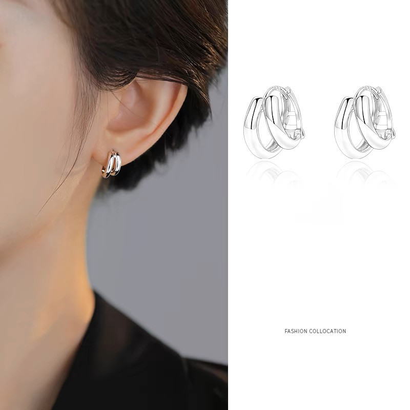 S999純銀二重アーチ型ピアス冷淡風痞帅イヤリング小衆高級感抜き素輪カップル耳飾り