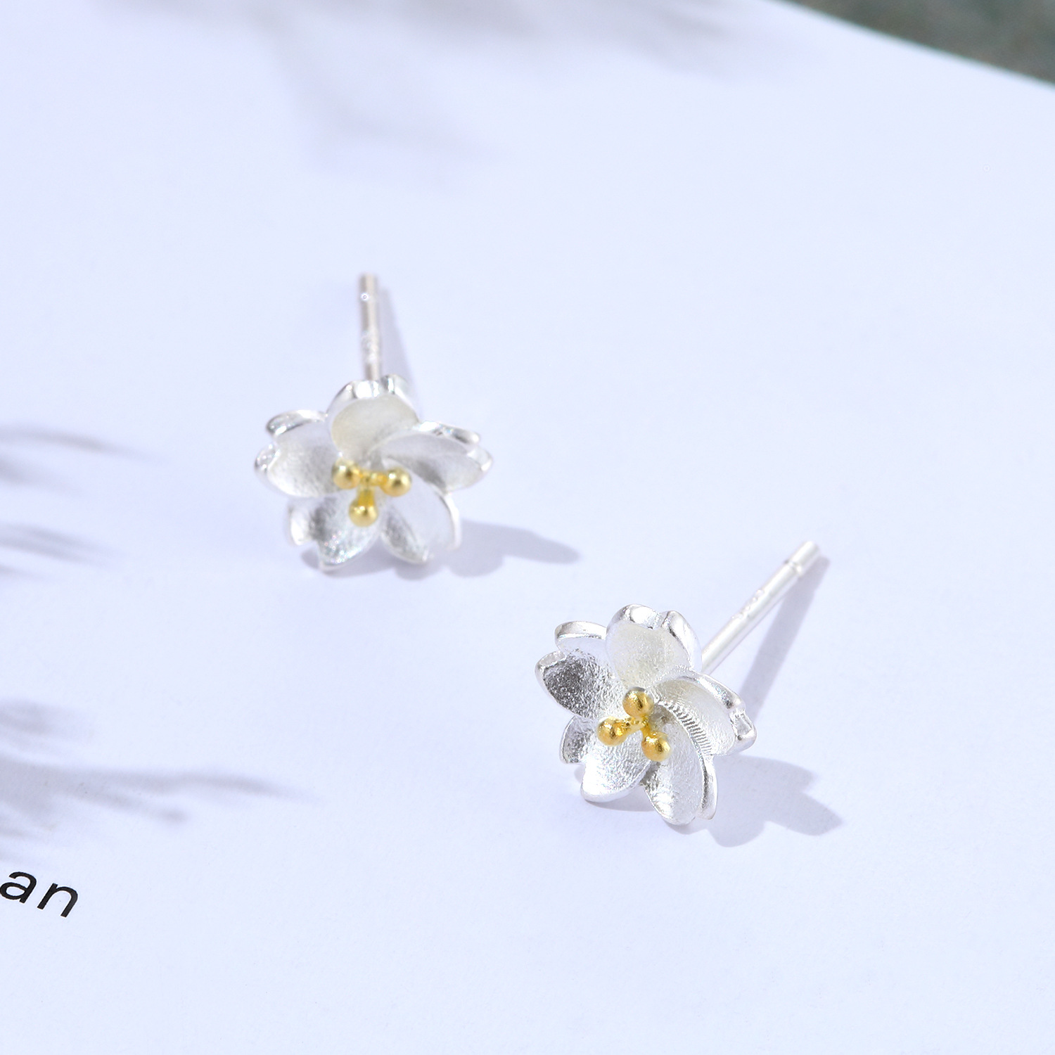 S925純銀桜ピアス女子学生森系花びらピアス小清新花通体銀耳アクセサリー