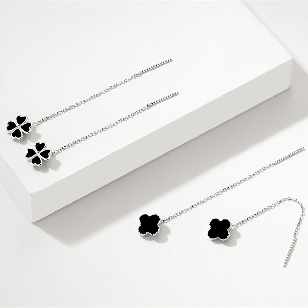 s999 スターリングシルバー四つ葉のクローバーイヤリング新しいシンプルなイヤリングフェミニンライト高級インハイエンドタッセルイヤリングイヤリング