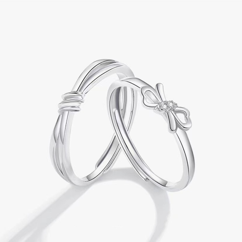 S925純銀カップルリング新型韓国版シンプル蝶結びリングアクセサリー卸売記念プレゼント彼女にプレゼント