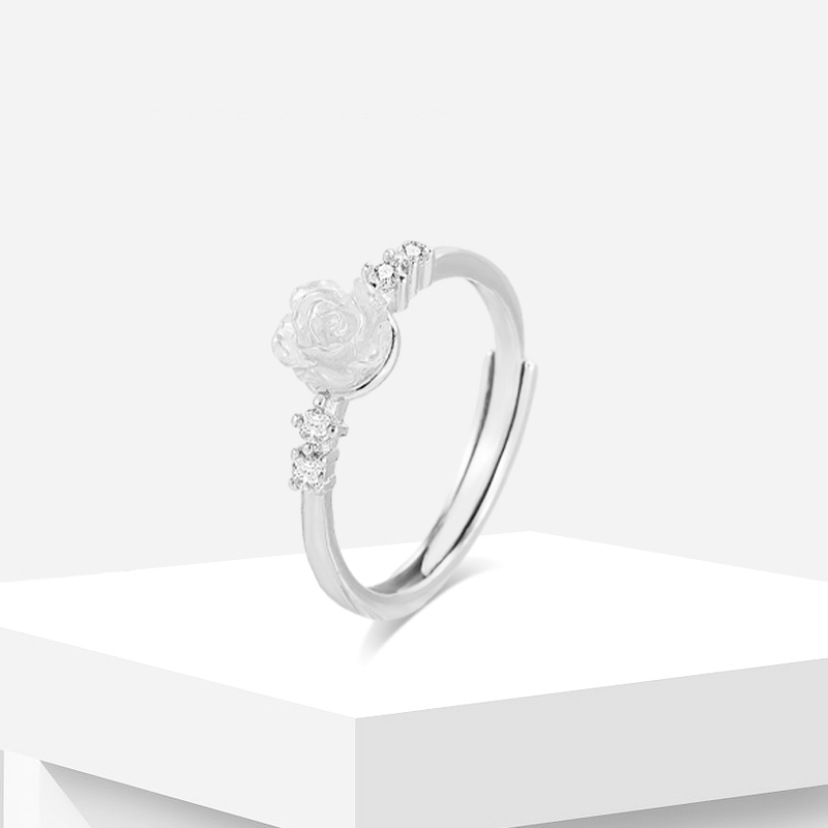S999純銀甘美清新ツバキの指輪ins高級感ジルコンの指環はテールリング卸売りを調節できる