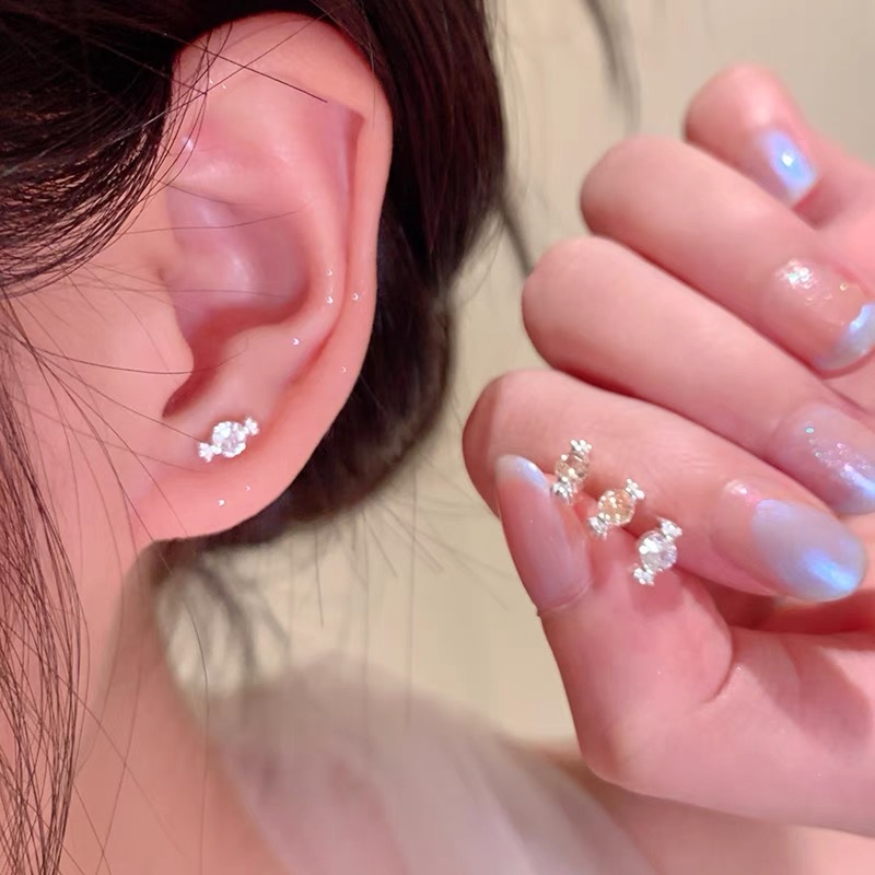 S999純銀キャンディージルコンピアス高級感軽贅沢イヤリング洗練されたミニ耳骨釘ピアスアクセサリー卸売り