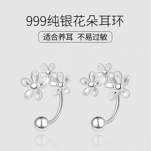S999純銀の花のイヤリングの高級感の気質の3つの小さい花のイヤリングの清新で甘いねじは耳飾りの卸売りをねじります。