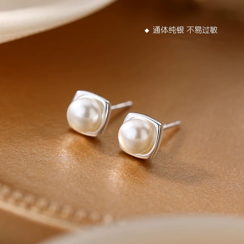 S999純銀淡水真珠ピアス名媛小香風イヤリング高級感フランス幾何学イヤリング卸売り女