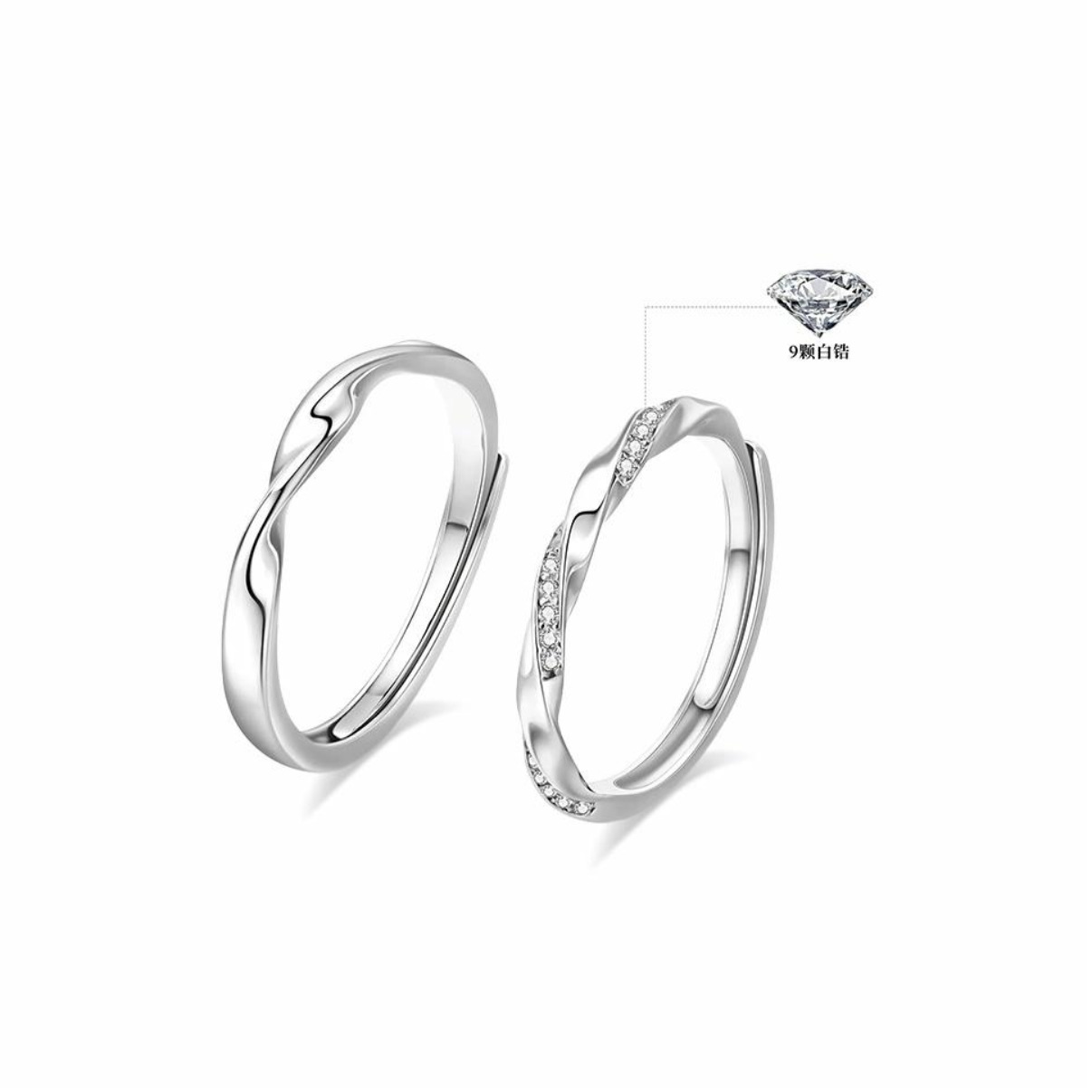 S999純銀微瀾心カップルの開口指輪高級感軽豪華ネット紅潮学生シンプル氷河ペアリング
