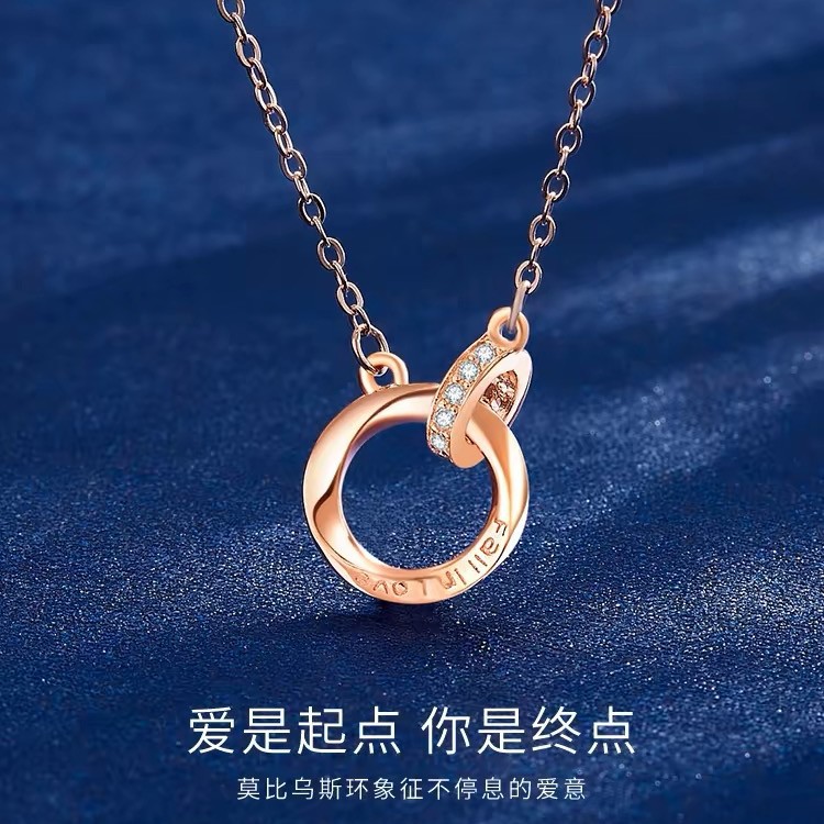 S999純銀双環ネックレス男女モデルファッションモビウスカップル鎖鎖高級感アクセサリー卸売り