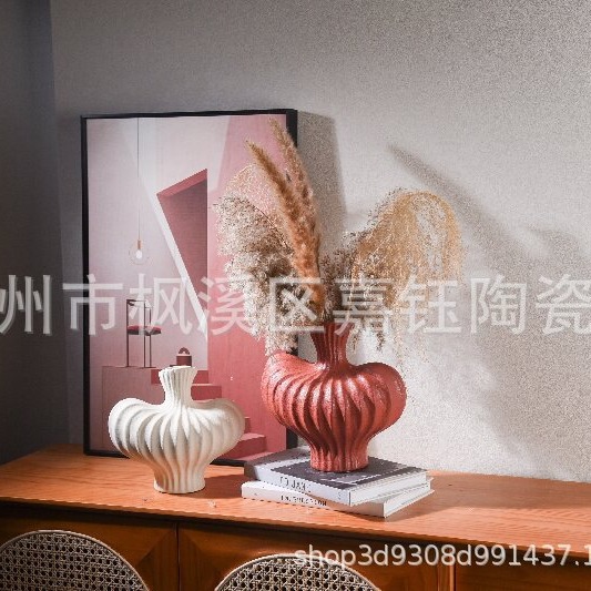 古典的なins白いセラミック花瓶生花生け花器が現代のシンプルなリビングテーブルを飾っている