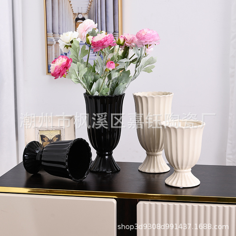 フランス風気質高級感大口径陶磁器黒花瓶水培花花緑植置物胡蝶蘭植木鉢